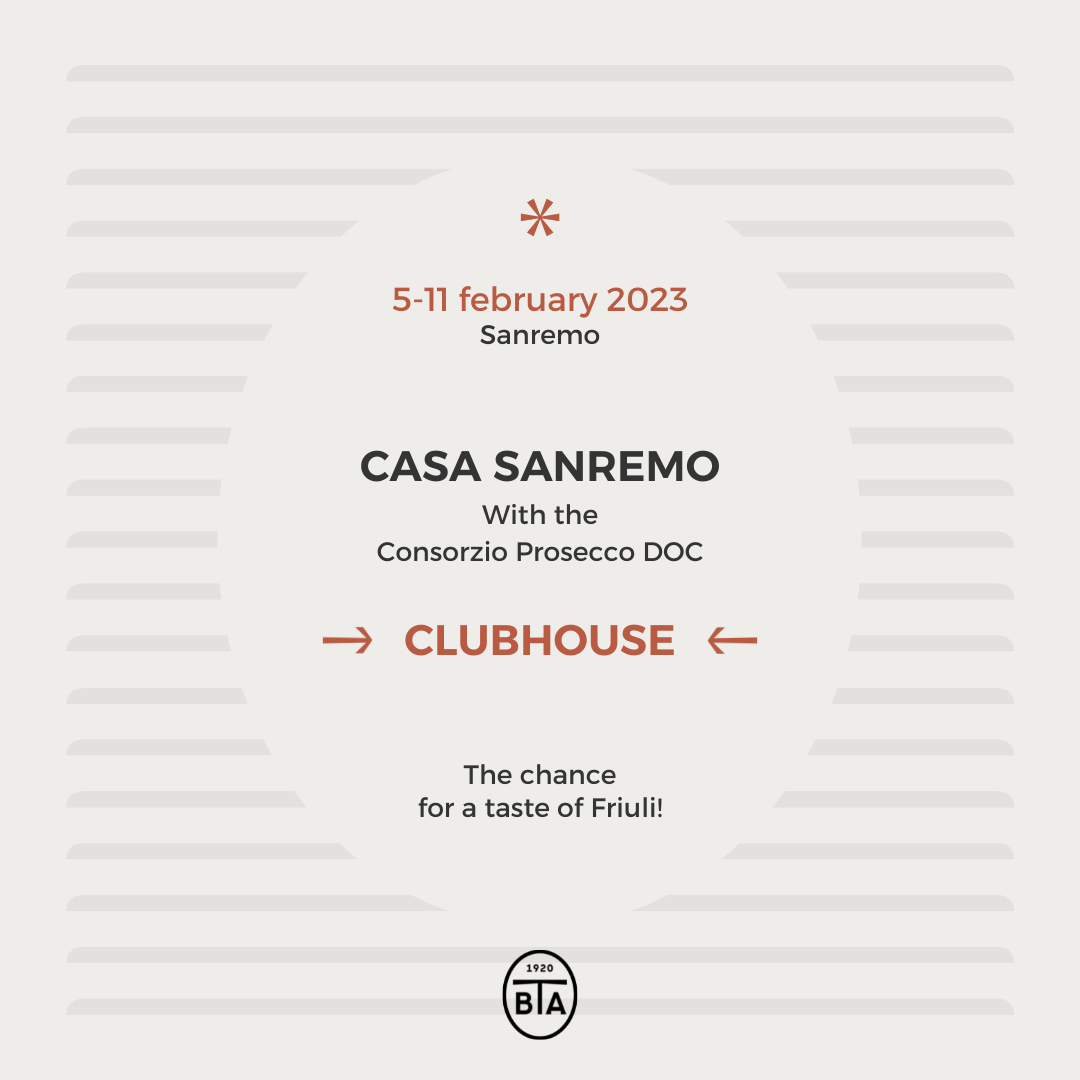 From the 5th until the 11th of February 2023, our Prosecco DOC will be at the ClubHouse of “Casa Sanremo” together with the Prosecco DOC Consortium, just during the Sanremo Music Festival.