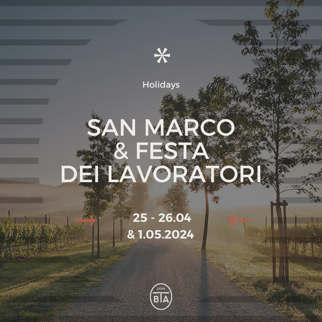 Giovedì 25 e venerdì 26 aprile l'azienda sarà chiusa per il ponte di San Marco.
